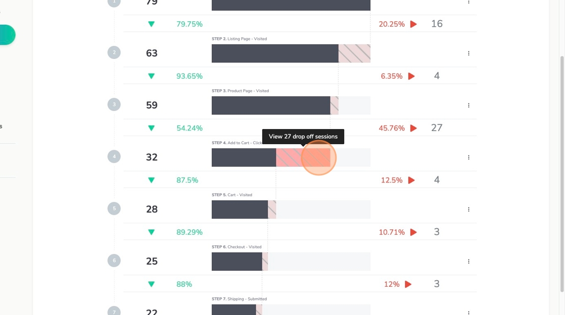 Lets use the conversion funnel. We can see a high volume of abandonment from the product page before adding to cart. Let's investigate!