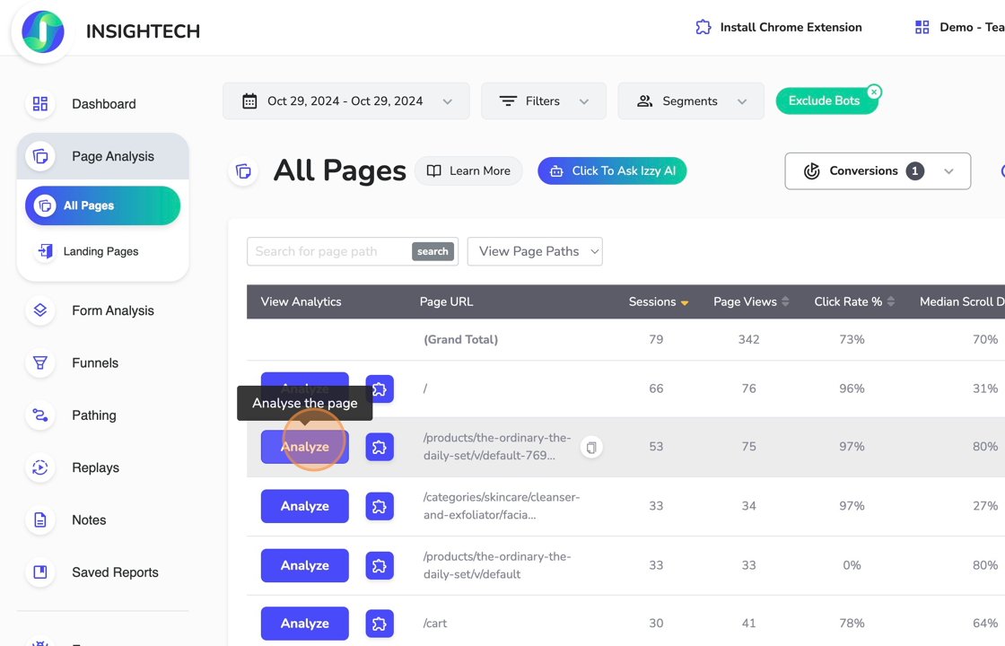 You can customise how your rage clicks are defined in Insightech, and also which elements are included/excluded from your rage click reports.